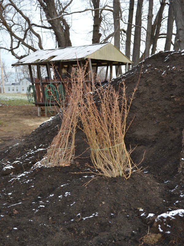 I knew that I needed to dig these two Lynnwood Gold Forsythia but I’m not even sure what I’m going to do with them or where I want to plant them.  But they were in my way and I knew that I had to dig them and I had to do it while they are dormant.  So I dug them and just heeled them into my potting soil pile for now.  Come spring I’ll do something with them.